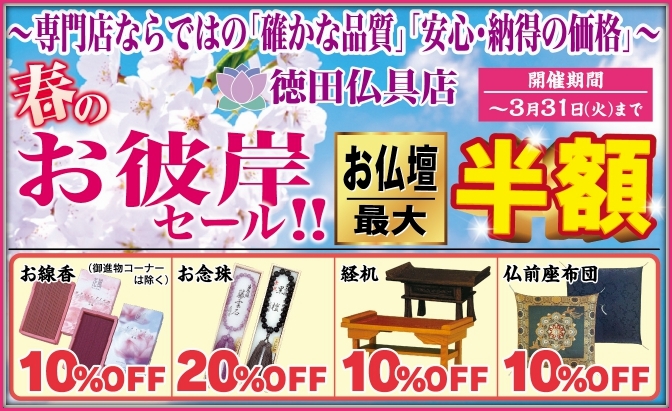 期間中、お仏壇全品通常価格からさらにお値引きいたします。